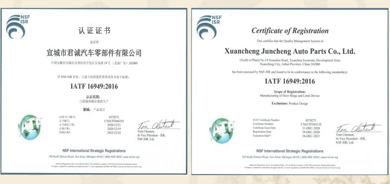 宣城市君誠汽車零部件有限公司是專業(yè)生產(chǎn)各類汽車鉸鏈及限位器的民營企業(yè),總投資3000余萬元,位于宣城高新技術(shù)產(chǎn)業(yè)開發(fā)區(qū),緊鄰宣廣、宣蕪高速公路,地理位置優(yōu)越,交通便捷。是“國家高新技術(shù)企業(yè)、知識產(chǎn)權(quán)貫標企業(yè)、安徽省商標示范企業(yè)、安徽省科技型企業(yè)”,已獲得國家發(fā)明專利18項,實用新型發(fā)明專利4項。主要從事各類汽車門鉸鏈及限位器的設(shè)計、研發(fā)、生產(chǎn)、和銷售,具有專業(yè)的合作團隊。自2015年正式生產(chǎn)至今,已形成一整套完整的生產(chǎn)、質(zhì)量管理體系。并已通過國家強制性產(chǎn)品認證“3C”體系認證及IATF16949國際質(zhì)量體系認證。 在生產(chǎn)設(shè)備上,公司擁... 【查看詳細】
